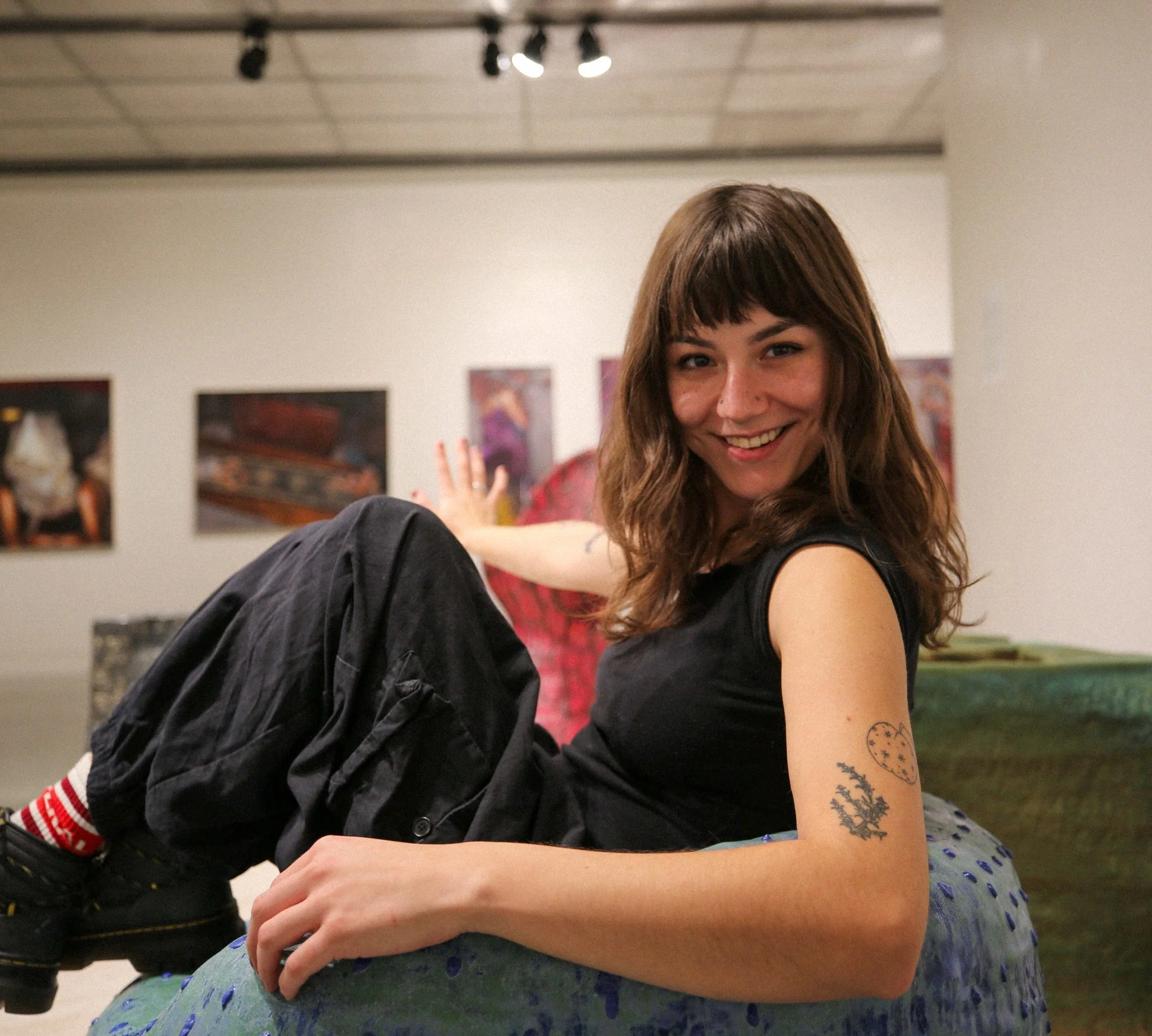 Throughout her BFA, she has experimented with various techniques, but her current focus lies in the technical and conceptual exploration of these expansive forms. Outside the studio, she enjoys spending time in nature, reading, and hanging out with her cats. After completing her studies, she plans to return to Indianapolis to continue working in the arts and further develop her creative practice.